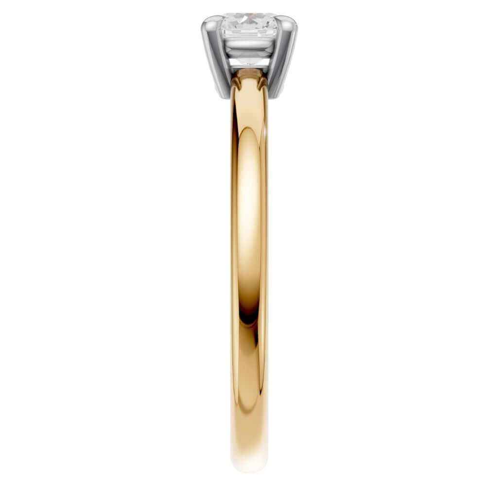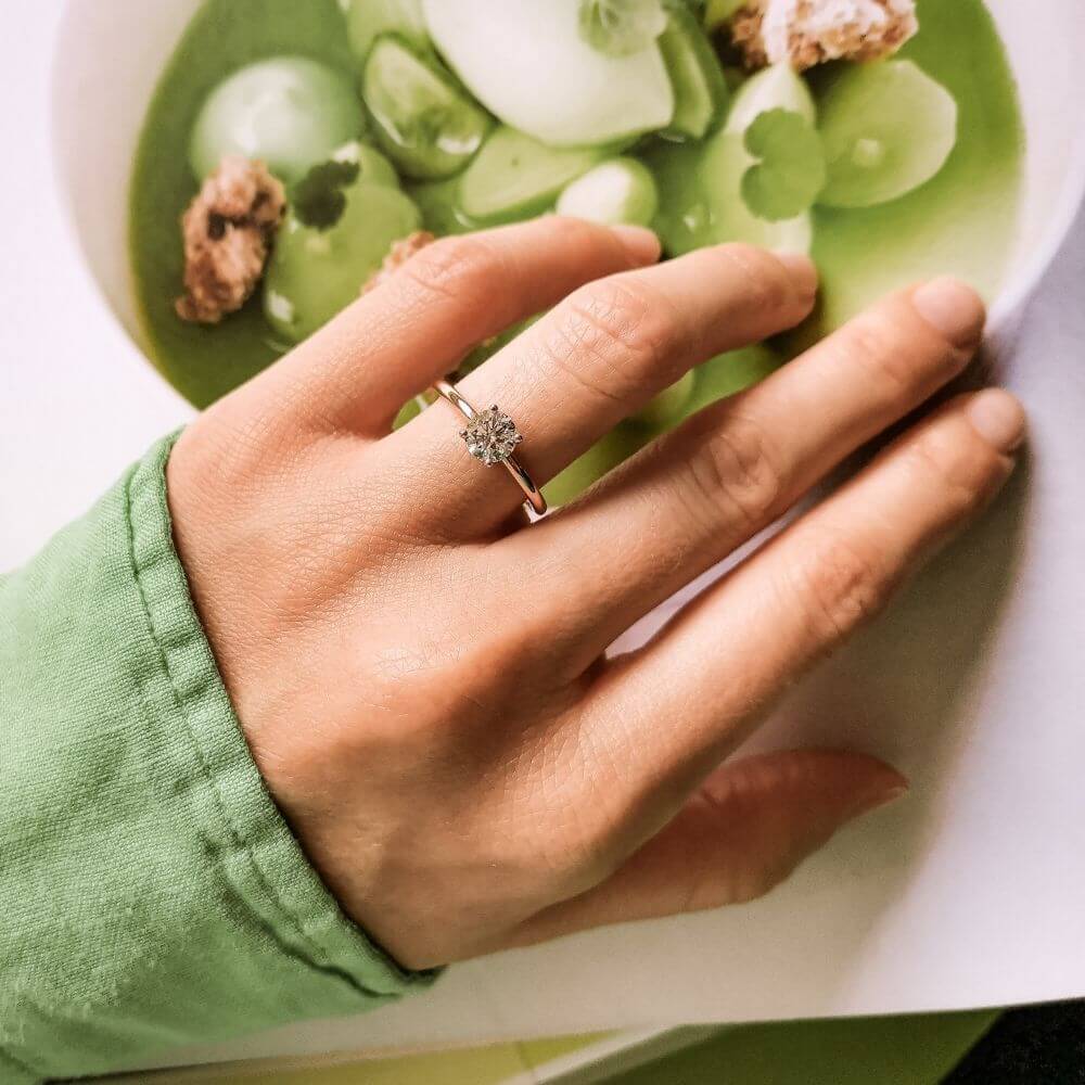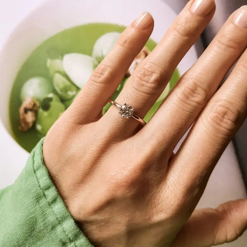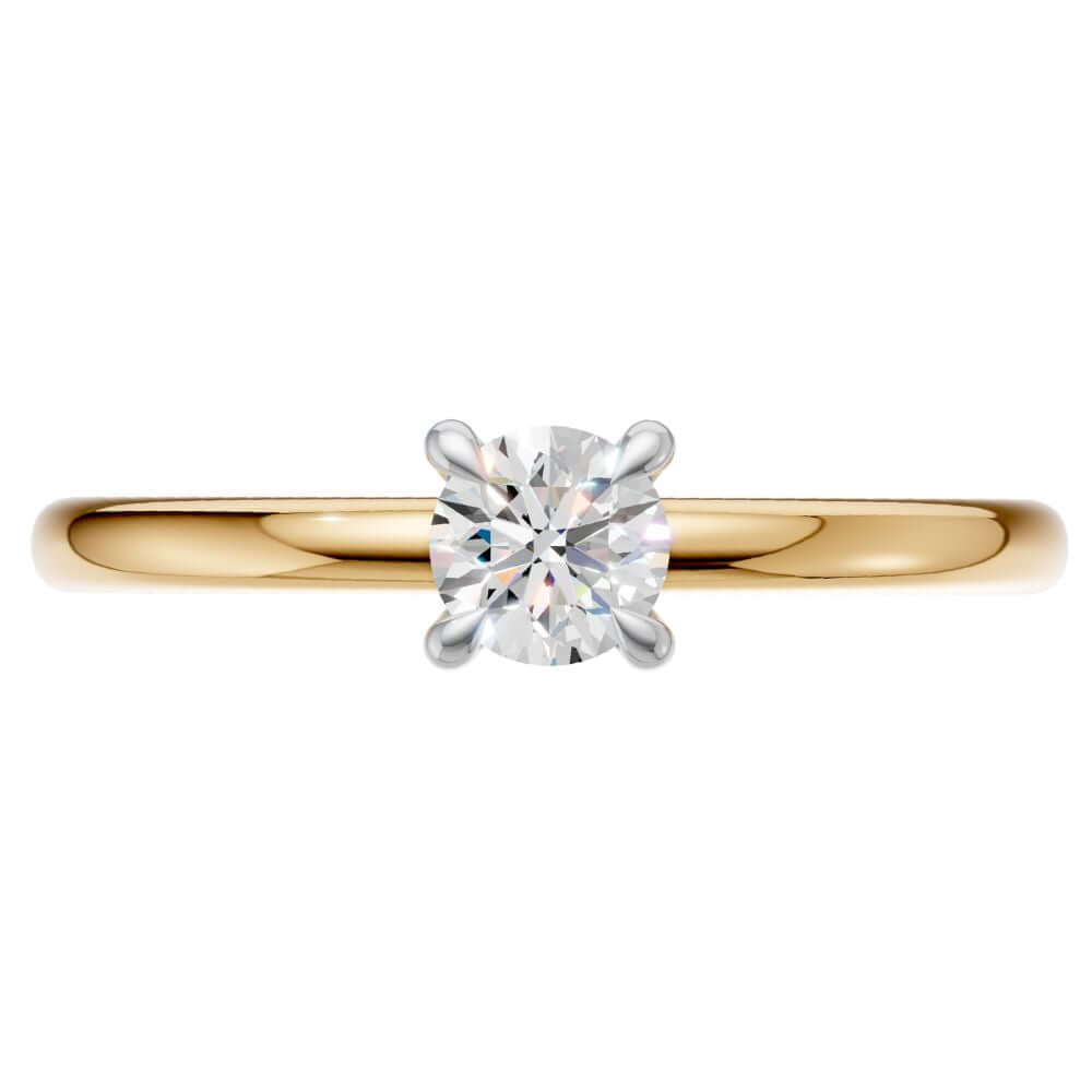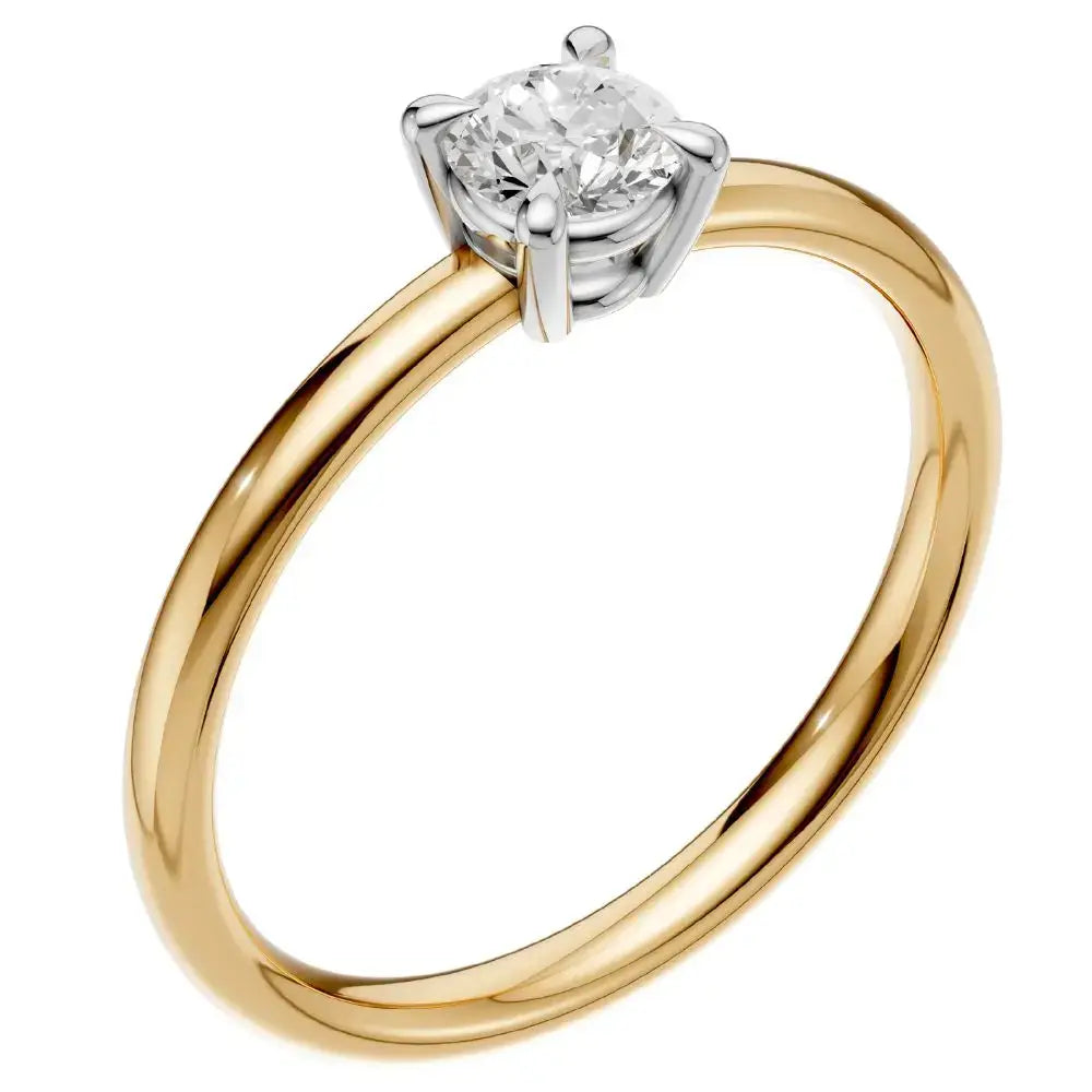 Der Labordiamant im Brillantschliff entfaltet sein volles Strahlen in einer harmonisch tiefen Fassung. Die sanft abgerundete Ringschiene sorgt für hohen Tragekomfort und ein ausgewogenes Design. Bei Varianten in Gelb- oder Roségold sind die Krappen in Weiß gehalten – so kommt das Funkeln des Diamanten perfekt zur Geltung.